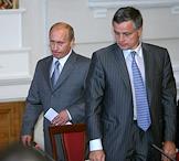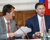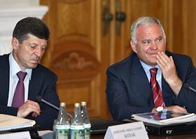 Полномочный представитель Президента России в Южном Федеральном округе (ЮФО) Дмитрий Козак (слева) и руководитель Пограничной службы Федеральной службы безопасности (ФСБ) России генерал-полковник Владимир Проничев (справа) во время заседания Государственного совета России.
