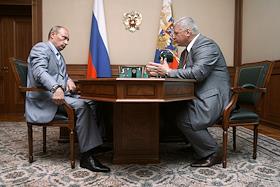 Губернатор Приморского края Сергей Дарькин (слева) и руководитель Федерального агентства по рыболовству России Андрей Крайний (справа) во время заседания Государственного совета России.