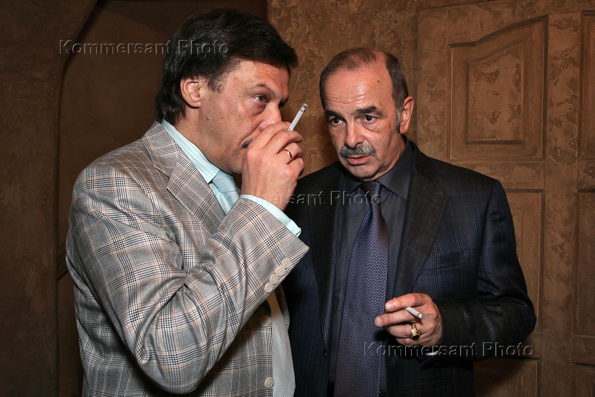 Полномочный представитель Правительства России в высших судебных инстанциях Михаил Барщевский (слева) на церемонии открытия нового сезона в клубе "Реставрация" и праздновании дня рождения президента "Реставрации" Александра Смелянского (справа).