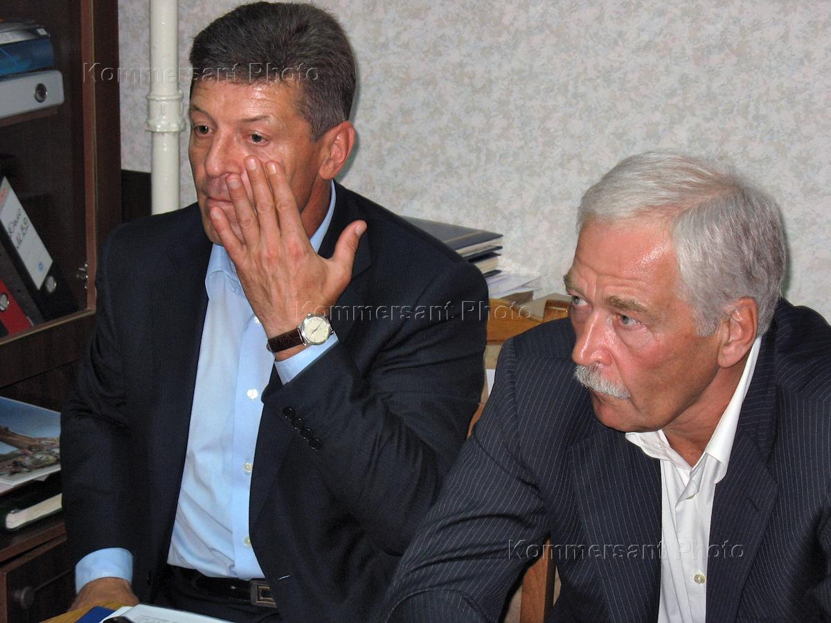 Председатель Государственной Думы России Борис Грызлов (справа) и полномочный представитель Президента России в Южном Федеральном округе (ЮФО) Дмитрий Козак (слева) во время встречи с активистами комитета "Матери Беслана".
