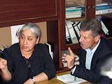 Председатель комитета "Матери Беслана" Сусанна Дудиева (слева) и полномочный представитель Президента России в Южном Федеральном округе (ЮФО) Дмитрий Козак (справа) во время встречи с активистами комитета "Матери Беслана".