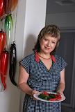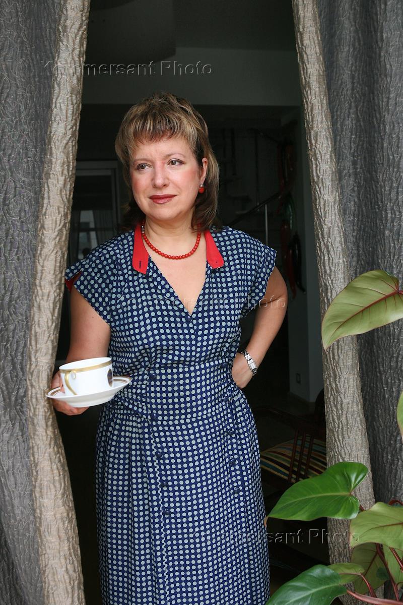 Корреспондент рубрики "Блюдо" "КоммерсантЪ Weekend" Елена Чекалова во время интервью у себя дома.