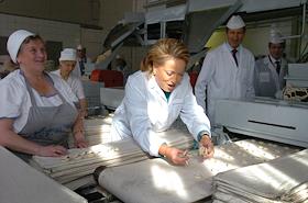 Губернатор Санкт-Петербурга Валентина Матвиенко во время посещения предприятие хлебопекарной промышленности – ОАО "Каравай".