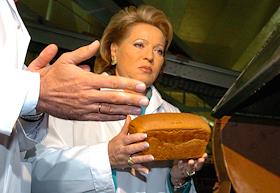 Губернатор Санкт-Петербурга Валентина Матвиенко во время посещения предприятия хлебопекарной промышленности ОАО "Каравай".