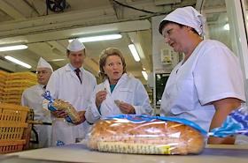 Губернатор Санкт-Петербурга Валентина Матвиенко во время посещения предприятие хлебопекарной промышленности – ОАО "Каравай".