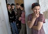 Беженцы из Чечни в селе Хасавюрт.