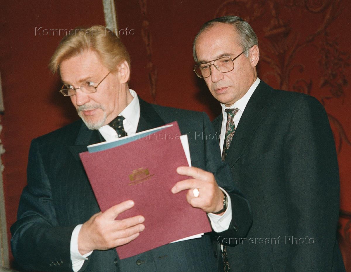Vladimir Vasilyev, Director of the Bolshoy Theatre together with Vladimir Yegorov, Russia's Culture Minister at a press conference of Committee for Reconstruction of the theatre.