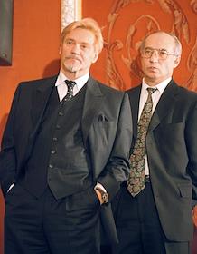 Художественный руководитель Государственного академического Большого Театра Владимир Васильев (слева) и министр культуры России Владимир Егоров (справа) на пресс-конференции, посвященной вопросам реконструкции Большого театра.