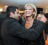 Режиссер Тина Баркалая (слева) и модельер Андрей Шаров (справа) на открытии бутика - бара "Nespresso" на Петровке.