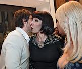 Режиссер Сергей Гинзбург (слева), режиссер Тина Баркалая (в центре) и генеральный директор РА "Баркстел" Ксения Теляковская (справа) на открытии бутика - бара "Nespresso" на Петровке.