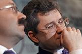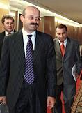 Заместитель председателя Центрального Банка России Константин Корищенко (слева), президент - председатель правления ЗАО "Внешторгбанк Розничные услуги" Михаил Задорнов (в центре) и президент Ассоциации Банков Центральной России Гарегин Тосунян (справа) перед началом пресс-конференции на тему: "Банковская система России и колебания на международном финансовом рынке: существует ли опасность кризиса?". Пресс-конференция прошла в агентстве "ИТАР-ТАСС".