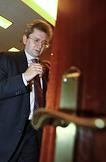 Президент - председатель правления ЗАО "Внешторгбанк Розничные услуги" Михаил Задорнов перед началом пресс-конференции на тему: "Банковская система России и колебания на международном финансовом рынке: существует ли опасность кризиса?". Пресс-конференция прошла в агентстве "ИТАР-ТАСС".