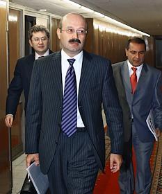Заместитель председателя Центрального Банка России Константин Корищенко (слева), президент - председатель правления ЗАО "Внешторгбанк Розничные услуги" Михаил Задорнов (в центре) и президент Ассоциации Банков России Гарегин Тосунян (справа) перед началом пресс-конференции на тему: "Банковская система России и колебания на международном финансовом рынке: существует ли опасность кризиса?". Пресс-конференция прошла в агентстве "ИТАР-ТАСС".