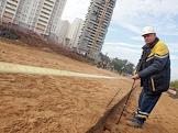 Прораб ОАО "Дормост" Валерий Холманских на дорожном строительстве на улице Краснобогатырской.