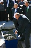 Мэр Москвы Юрий Лужков (слева) и заместитель председателя правительства Москвы, начальник Департамента внешних связей Иосиф Орджоникидзе (справа) на церемонии закладки камня в основание башни "Россия", которая станет самым высоким сооружением в Европе.