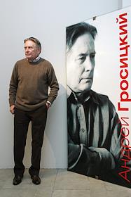 Художник, представитель "новой вещественности" и поп-арта Андрей Гросицкий на церемонии открытия своей выставки в Третьяковской галерее на Крымском Валу.