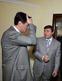 VI Международный Экономический Форум "Сочи 2007". Президент ОАО "Российские железные дороги" (РЖД) Владимир Якунин (слева) и губернатор Красноярского края Александр Хлопонин (Справа) на Деловом завтраке V Красноярского экономического форума.