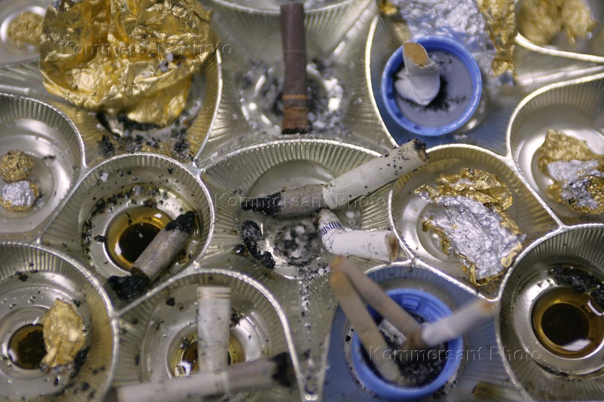 Торжественная церемония награждения лауреатов национальной телевизионной премии "ТЭФИ - 2007" в категории "Лица" прошла в ГЦКЗ "Россия" в Лужниках. Пепельницы с окурками сигарет.