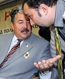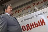Лидер партии национального возрождения "Народная воля - Социалистическая единая партия России", депутат Государственной Думы России Сергей Бабурин (слева) на VIII съезде политической партии "Народный союз" в гостиничном комплексе "Измайлово".