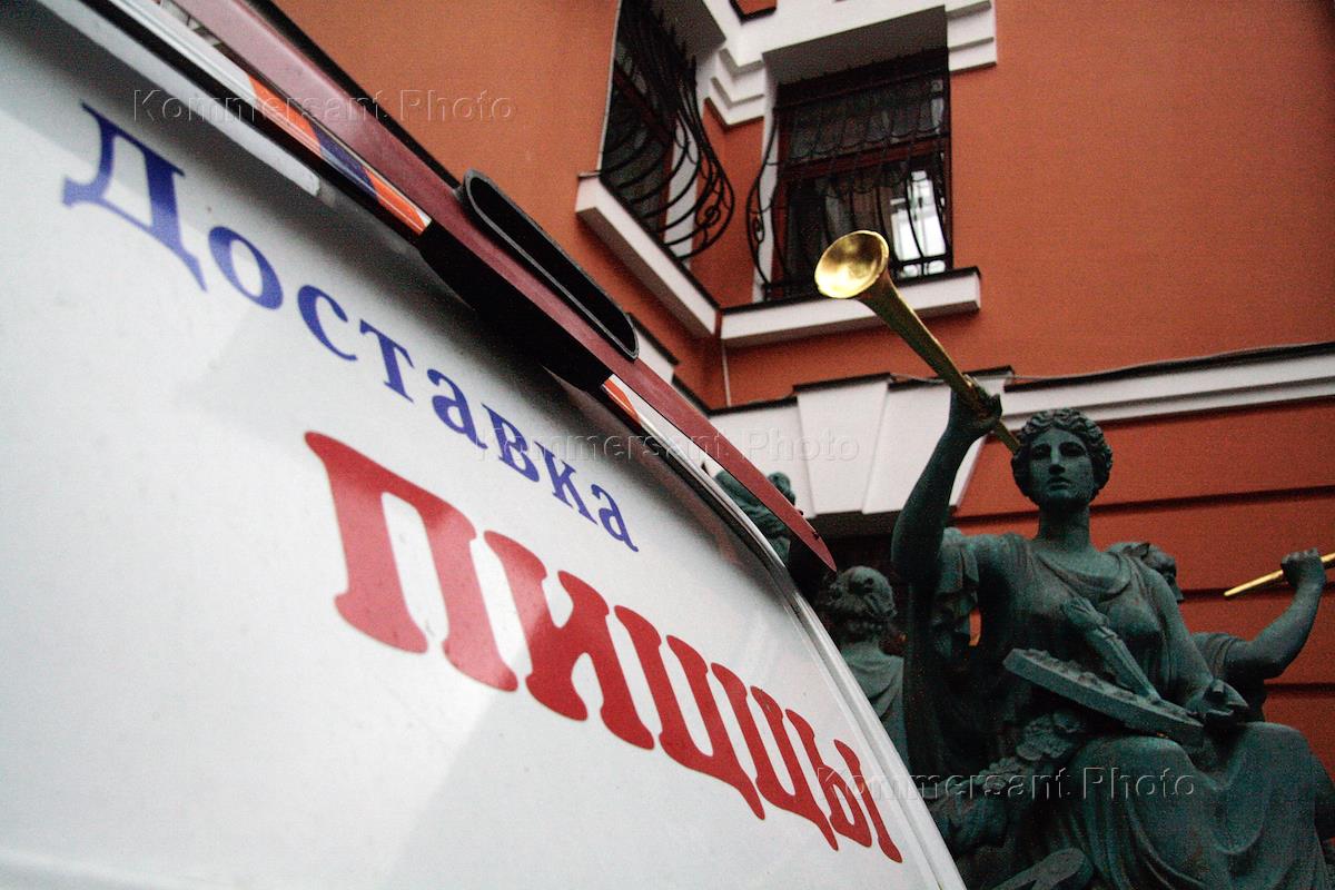 Автомобиль с надписью на кузове "Доставка пиццы".