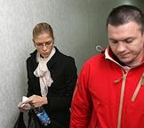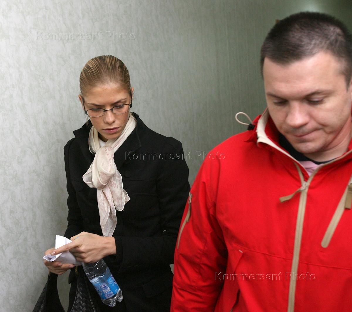 Фотомодель Елена Перминова (слева), обвиняемая в сбыте наркотиков, перед началом судебного заседания по ее делу.