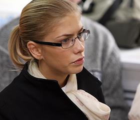 Фотомодель Елена Перминова, обвиняемая в сбыте наркотиков, в зале суда перед началом судебного заседания.