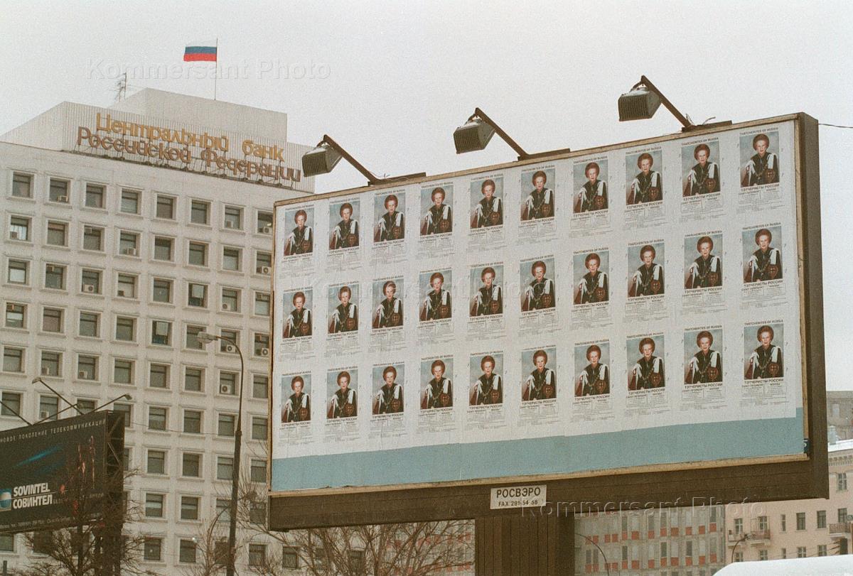 Billboard on October square near Russian central bank advertising the Russian Thatcherist party.