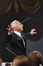 Президент Московского Международного Дома музыки (ММДМ), дирижер Владимир Спиваков за дирижерским пультом на концерте певца Дмитрия Хворостовского. Концерт прошел в рамках IV-ого Международного фестиваля "Владимир Спиваков приглашает" в Большом зале консерватории.