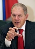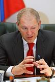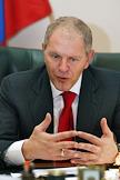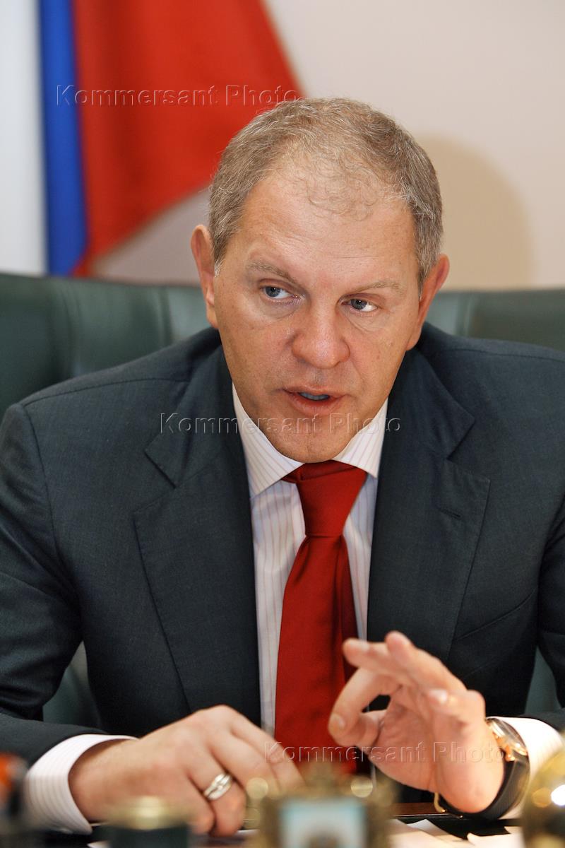 Руководитель Федерального агентства России по рыболовству Андрей Крайний во время интервью в своем рабочем кабинете.
