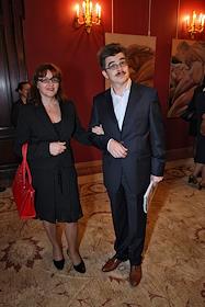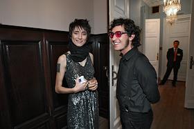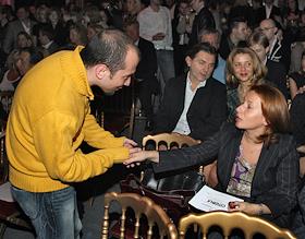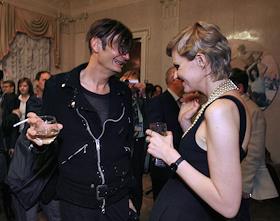 Французский стилист и издатель Жерар Капофф (слева) и сценаристка, актриса Рената Литвинова (справа) на презентации первого номера журнала "Сitizen К" в галерее "Триумф".