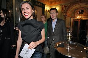Совладелица бутика британского ювелира Стивена Вебстера Анастасия Рогозина (справа) и генеральный директор Ассоциации "Золотая маска" Эдуард Бояков (слева) на презентации первого номера журнала "Сitizen К" в галерее "Триумф".