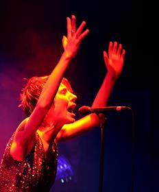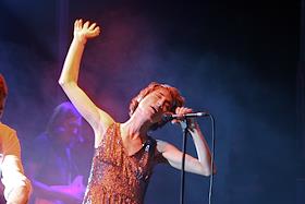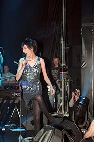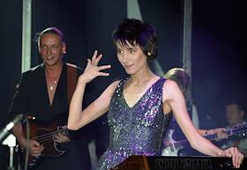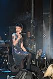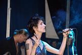 Певица Земфира (на сцене) во время выступления с концертом на презентации первого номера журнала "Сitizen К" в галерее "Триумф".