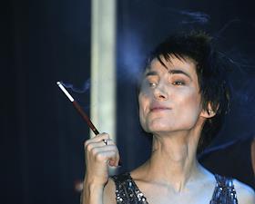 Певица Земфира во время выступления с концертом на презентации первого номера журнала "Сitizen К" в галерее "Триумф".