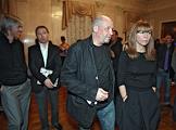 Совладелец галереи "Триумф" Емельян Захаров (слева) и сценаристка, актриса Рената Литвинова (в центре) на презентации первого номера журнала "Сitizen К" в галерее "Триумф".