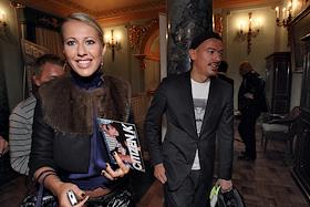 Главный редактор журнала "Сitizen К" Сергей Николаевич (слева) и телеведущая Ксения Собчак (справа) на презентации первого номера журнала "Сitizen К" в галерее "Триумф".