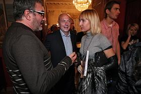 Французский стилист и издатель Жерар Капофф (в центре), директор по региональным и международным проектам Издательского Дома "КоммерсантЪ" Аркадий Райхштейн (слева) и член совета директоров ИД "Коммерсантъ" Андрей Галиев (справа) на презентации первого номера журнала "Сitizen К" в галерее "Триумф".
