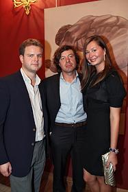 Бизнесмен Борис Зосимов (слева) с супругой Полиной Ташевой (в центре) на презентации первого номера журнала "Сitizen К" в галерее "Триумф".