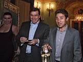 Французский стилист и издатель Жерар Капофф (слева) и директор по региональным и международным проектам Издательского Дома "КоммерсантЪ" Аркадий Райхштейн (справа) на презентации первого номера журнала "Сitizen К" в галерее "Триумф".