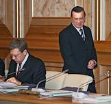 Председатель Правительства России Виктор Зубков (слева) и его заместитель, министр финансов России Алексей Кудрин (справа) во время выездного заседания Государственного совета России.