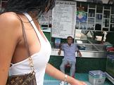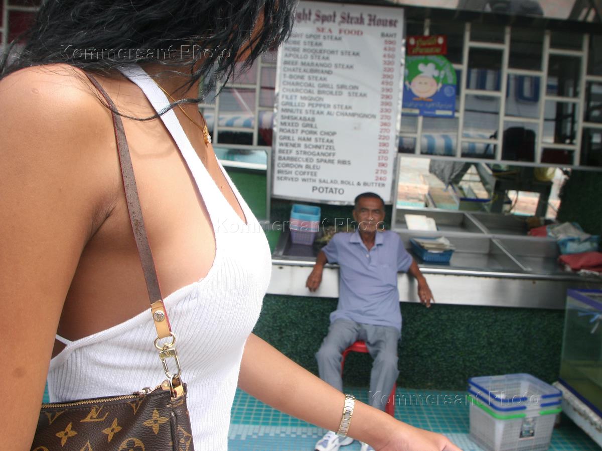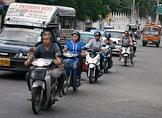 Таиландская девушка и молодые люди на скутерах на улице города Паттайя.