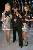 Участницы телепроекта "Фабрика звезд - 7" Карнелия Манго (в центре), Наталья Тумшевиц (слева) и Юля Паршута (справа) на отчетном концерте телепроекта "Фабрика звезд - 7" в телестудии Останкино.
