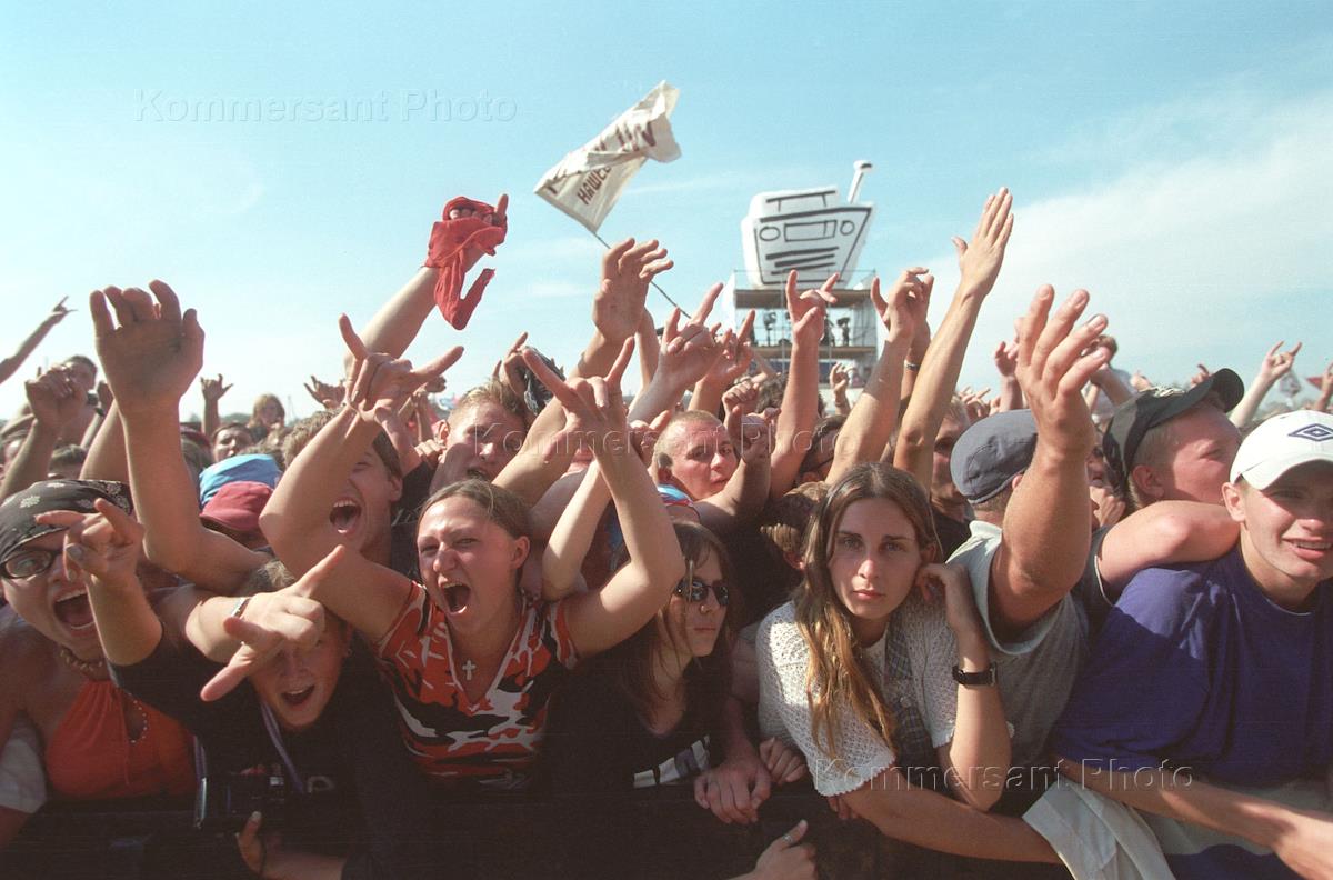 Зрители на рок-фестивале "Нашествие", организованном "Нашим радио" на ипподроме города Раменское.
