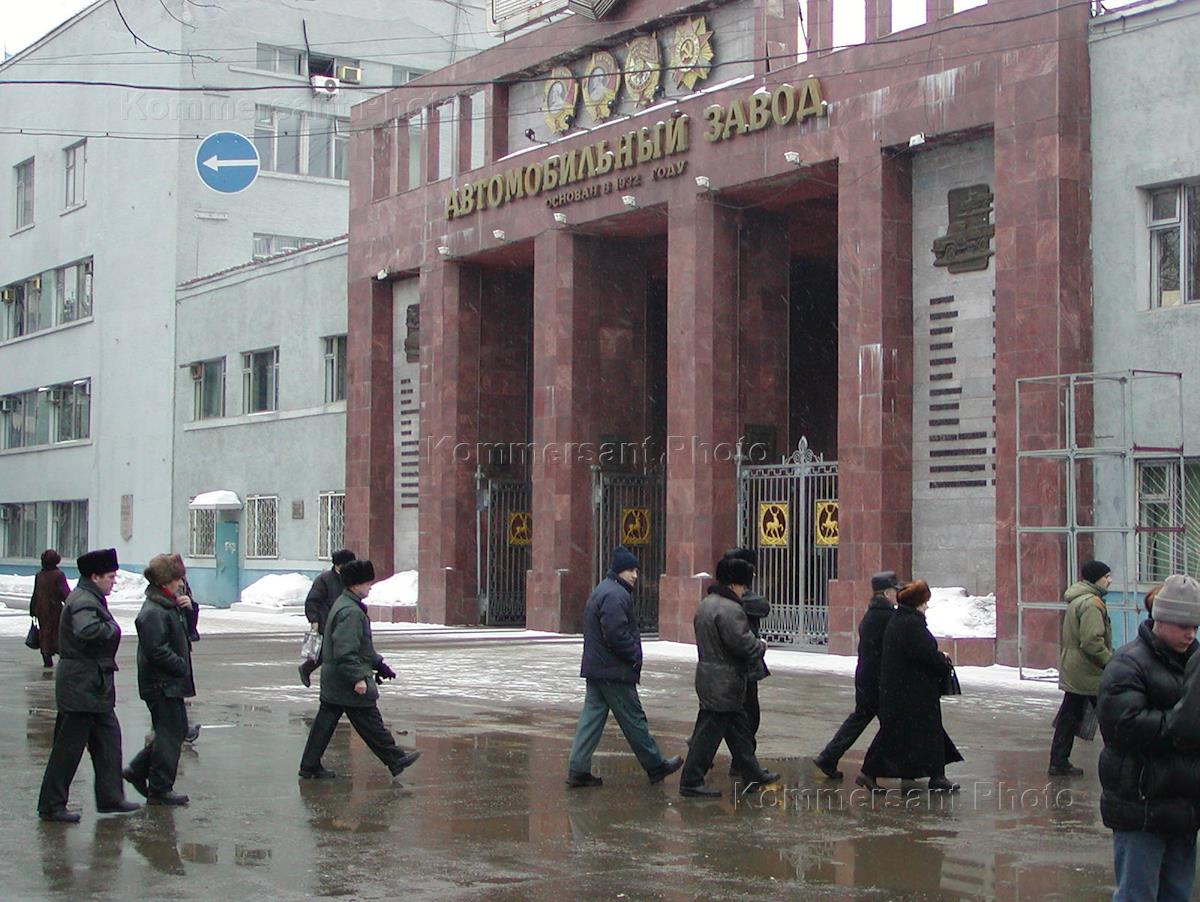 Работники ОАО "ГАЗ" идут на работу через главную проходную.
