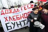 "Марш против бедности" он же "Марш пустых кастрюль", организованный запрещенной лимоновской Национал-большевистской партией (НБП) и Обьединенным гражданским фронтом (ОГФ). Участники акции прошли от станции метро "Горьковская" к Петропавловской крепости, где состоялся митинг. Участницы перед плакатом "Дождетесь хлебного бунта!".