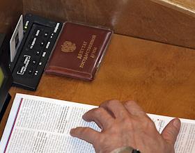 Заседание Государственной Думы России. Удостоверение депутата на столе.