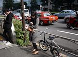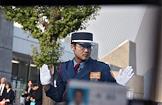 Виды города Токио. Полицейский регулирует дорожное движение на улице Токио.