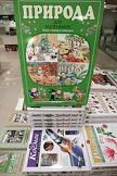 Полки с книгами о природе для детей в магазине "Республика" торгового комплекса "Lotte Plaza".