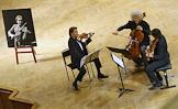 VIII Московский Международный музыкальный фестиваль "Памяти великого артиста. Посвящение Олегу Кагану". Скрипач Юлиан Рахлин (в центре), виолончелист Миша Майский (справа) и альтист Максим Рысанов (слева) во время концерта И.С.БАХ - "Гольдберг-вариации" (переложение для скрипки, альта и виолончели). Концерт прошел в Большом зале консерватории.