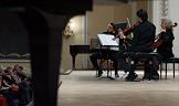VIII Московский Международный музыкальный фестиваль "Памяти великого артиста. Посвящение Олегу Кагану". Скрипач Юлиан Рахлин (слева), виолончелист Миша Майский (справа) и альтист Максим Рысанов (в центре) во время концерта И.С.БАХ - "Гольдберг-вариации" (переложение для скрипки, альта и виолончели). Концерт прошел в Большом зале консерватории.