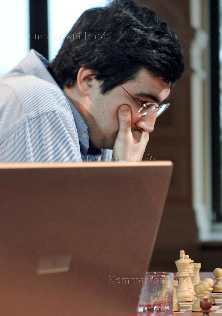 Чемпион мира по шахматам Владимир Крамник во время проведения суперматча по быстрым шахматам с шахматистом из Индии Вишванатаном Анандом в Главном универсальном магазине (ГУМ).